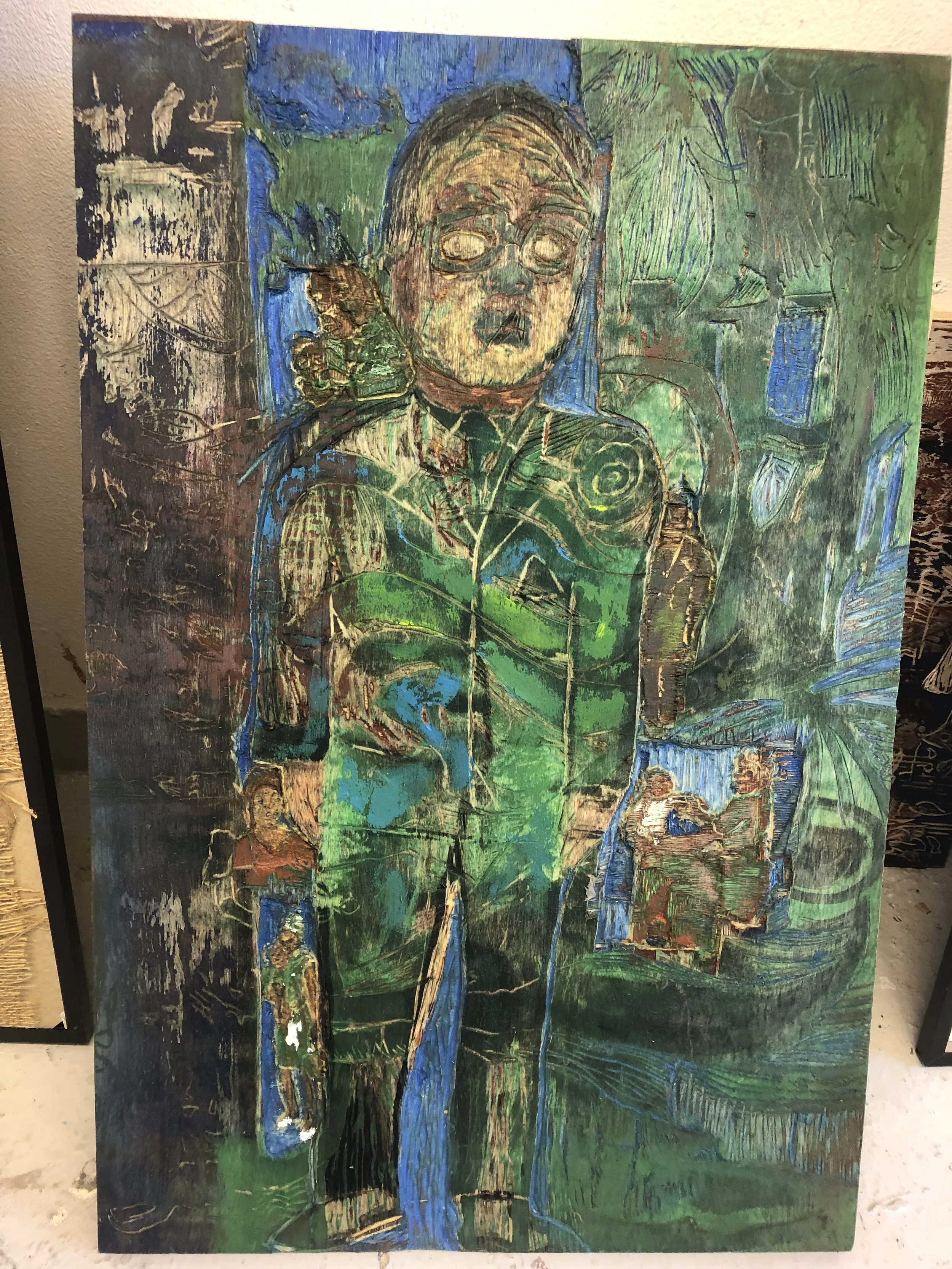 Ett pågående arbete där träsnitt möter måleri